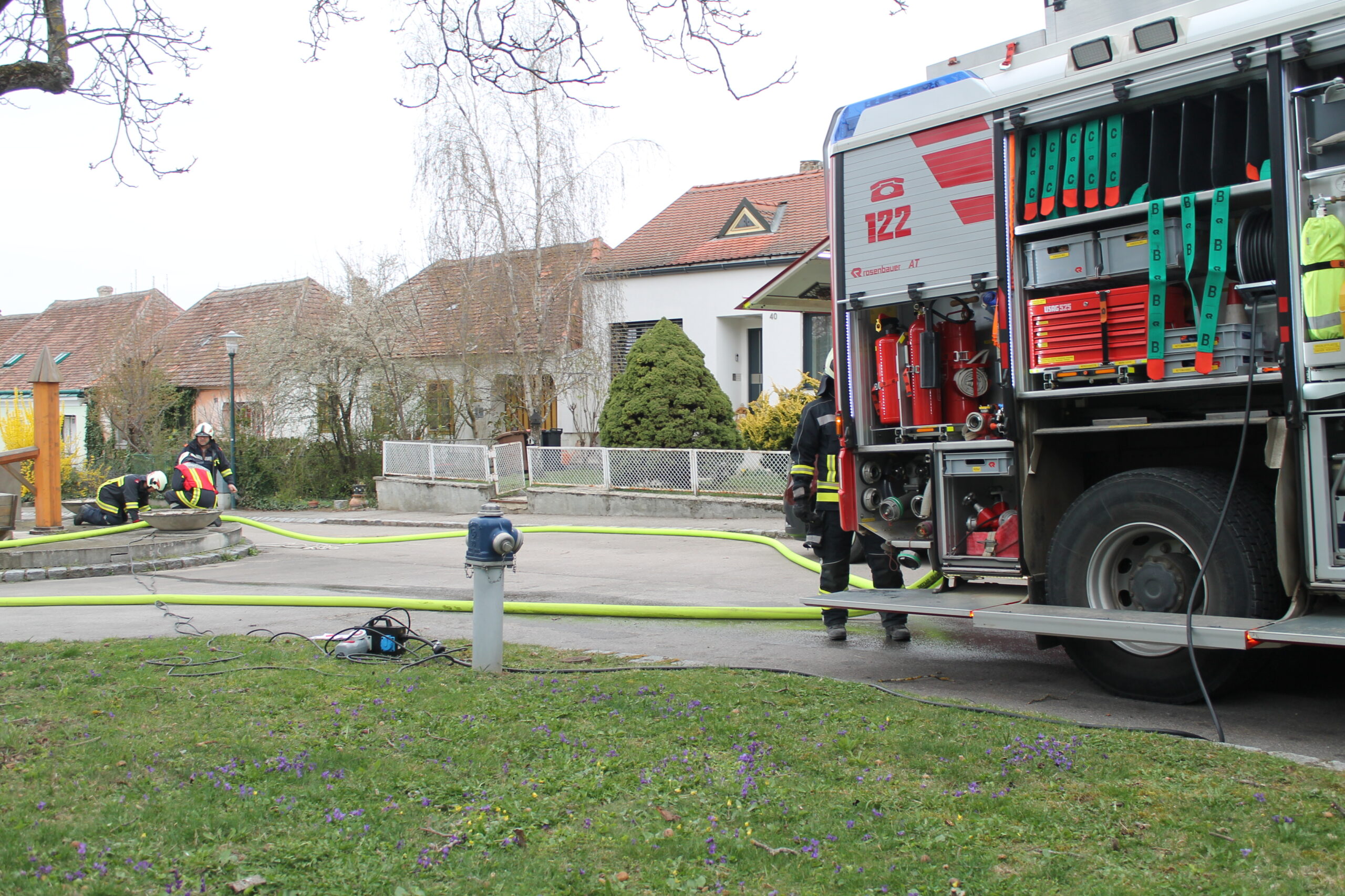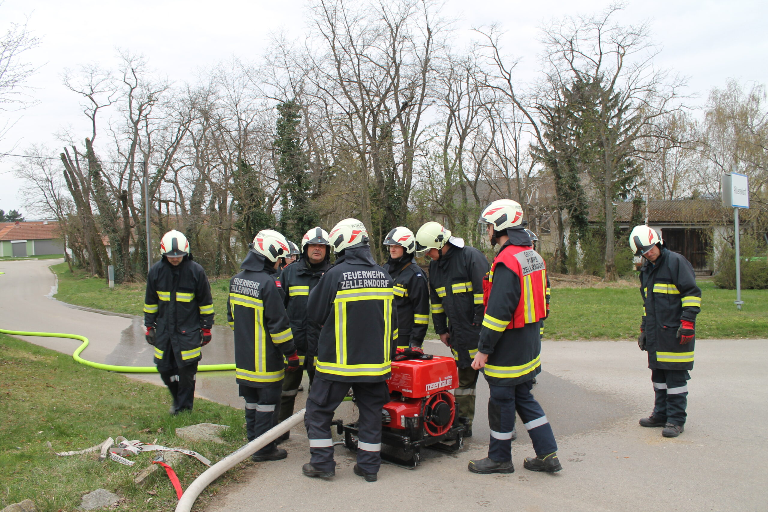 Ca. 25 Minuten nachdem die Gruppenkommandanten Ihre Aufgaben von Einsatzleiter BM Richard Graf bekommen hatten, konnte das erste Wasser am Hochsteinerberg abgegeben werden. Entnommen wurde das Wasser aus dem Dorfbrunnen mit 2 Unterwasserpumpen und in das HLF3 Zellerndorf eingespeist. Als nächste Pumpe wurde die Tragkraftspritze des KLF Zellerndorf zur Weiterförderung in die Zubringleitung eingebaut. Kurz vom Hochsteinerberg wurde die Tragkraftspritze des HLF1 Pillersdorf in Stellung gebracht. Für den „Löscheinsatz“ wurden von der Feuerwache Pillersdorf 2 C-Mehrzweckstrahlrohre und 1 B- Mehrzweckstrahlrohr mit und ohne Mundstück eingesetzt. In Summe wurden so ca. 55.000l Wasser aus dem Brunnen entnommen.