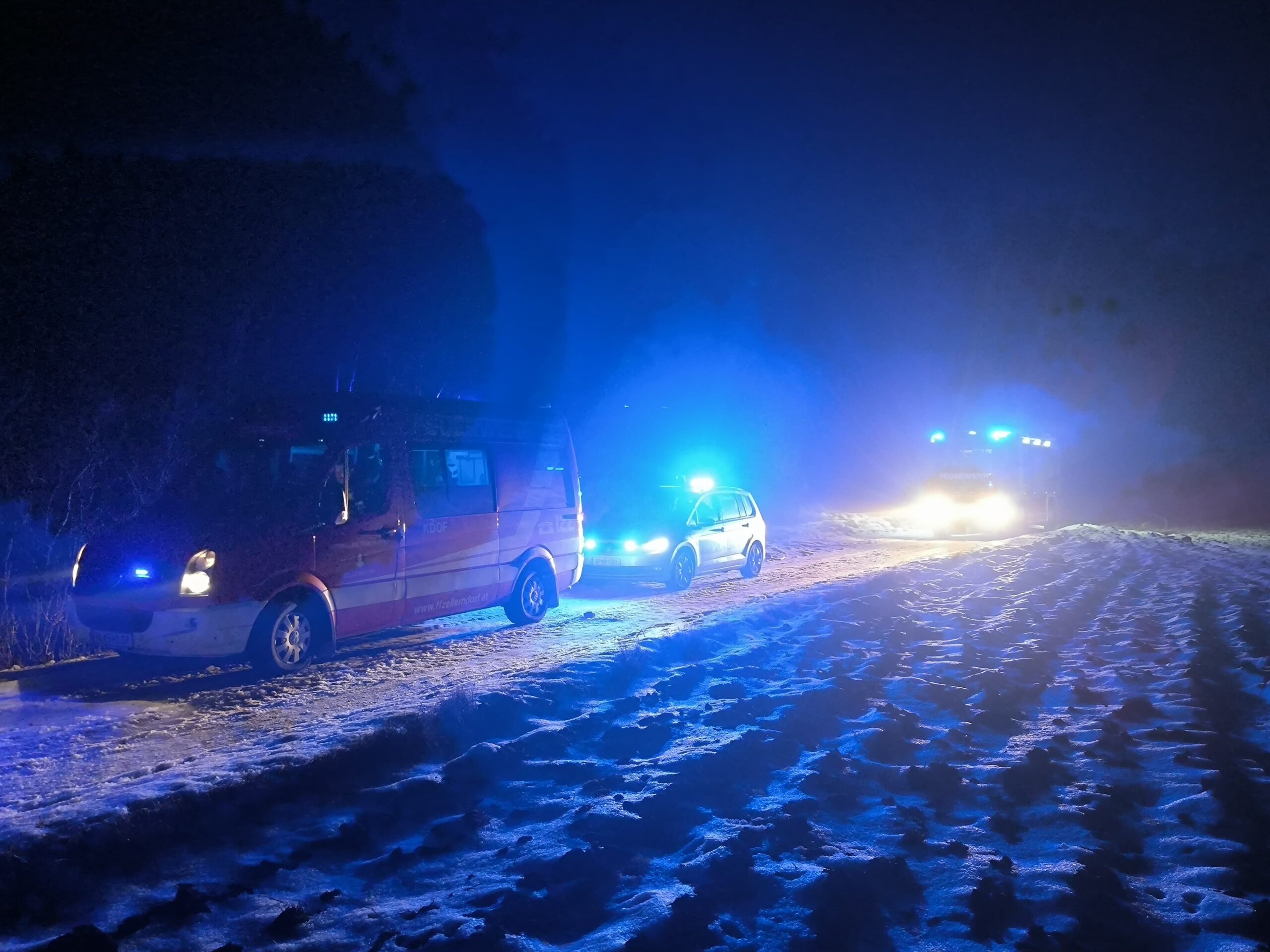 Ein PKW blieb auf einem Feldweg in einer Schneewechte hängen. Mit der Seilwinde des HLF-3 wurde der PKW aus der Schneewechte zurück auf die Fahrbahn gezogen. Nach der Bergung konnte der Fahrer die Fahrt selbstständig fortsetzen.